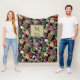 Elegant flowers and leaves black floral fleece blanket
