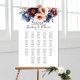 Elegant wedding seating chart with navy, burgundy and blush flowers, up to 18 tables