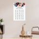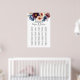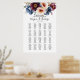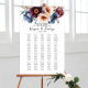 Elegant wedding seating chart with burgundy, navy blue and blush pink flowers, up to 20 tables