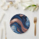 Elegant Fluid Art with Copper and Blue Swirls Paper Plates