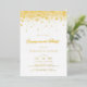 Invite guests with this customizable gold foil engagement party invitation. It features gold foil confetti dots and elegant script. Personalize this foil-pressed engagement party invitation by adding names, date, time and other event details. This modern gold foil engagement party invitation is available in other background colors and foil finishes.