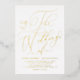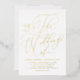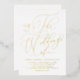 Invite family and friends with this customizable foil-pressed wedding invitation. It features a whimsical calligraphy script. Personalize this script gold foil wedding invitation by adding names, date, time and other details. This elegant calligraphy wedding invitation is perfect for any wedding season or wedding theme.