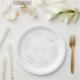 Custom-designed paper plates featuring elegant sage foliage design with personalized initials.