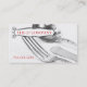 Elegant silverware fork, knife and spoon on this classy business card for chefs, cooks, personal chefs, caterer or catering, cooking classes, cooking lessons, gourmet shop, kitchen store, or other food, cooking, or culinary service. Also makes a neat 'from my kitchen' gift tag for your homemade food gifts or small market food packaging.