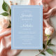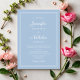 Plain white envelopes are included with paper invitations and will come to fit the invitation size you select. If you don’t need the envelopes, you may choose to not receive them by selecting the dropdown below "Envelopes" and choosing "None." If you’d like to have a design on your envelopes, you can browse all of these available envelopes to find the design that complements your Elegant Formal Blue Wedding Invitation.