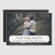Chic modern photo card wedding Save the Date magnets. Template features space for one of your engagement photos with a simple classic frame overlay where you can add your wedding date and the bride and groom's names. Use the design tools to further customize the design.