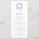 Elegant French Roses Blue Monogram Crest Wedding Menu