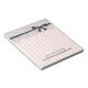 A lovely and feminine custom notepad that features a border design of delicate white "lace" and a black ribbon "bow". A French-inspired design that allows for customization of both text lines. Shown "From the desk of" and personalized with her name, or you can change the text as you like.