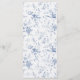 Elevate your wedding reception with our Elegant French Vintage Blue Floral Jouy Menu. Featuring a refined blue floral Jouy pattern, this menu exudes sophistication and charm, adding a touch of elegance to your dining experience.