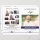 A beautifully elegant funeral program with a blue floral design and blue name band. Features include a large photo on the front, photo collage on the back page with 9 photos and plenty of space for an obituary and order of service (or other text of your choice on the inside pages. All the text is easy to edit and can be customized to create a personal and memorable funeral program for your loved one.