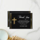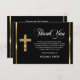 Elegant personalized printed sympathy & memorial thank you photo card. Easy to add photo / picture of your loved one. Christian, Catholic, Religious. Faux gold cross on black background. Back of card has room to add photo and date. Give them during or send them after the funeral. Makes great keepsake. Sample one and see. Add your thank you message / note. See others like 'in loving memory'