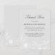 A Botanical themed condolence thank you note featuring outlined white magnolia branch over a silver gray background, and a thank you template that is easy to personalize.