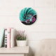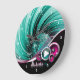 Pretty girly custom clock with a beautiful modern music composition abstract vector illustration with a green / blue disco mirror ball with sparkles on a stylish swirl burst background. Also a play button, speakers and graphic equalizer in pink and green on a black wave at the bottom of the image from www.vectoropenstock.com. A stylish and trendy original gift for teenage girls, women, musicians, dee jays, music lovers & clubbers. If you need any assistance customizing your product please contact me through my store and I will be happy to help.