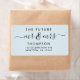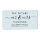 Elegant and sophisticated Future Mr and Mrs address shipping label with gorgeous script calligraphy complemented with minimal, modern typography on a light blue backdrop.