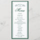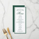 Elevate your wedding reception with this emerald green Elegant & Chic Botanical Crest Monogram Wedding Menu, designed to impress with its timeless sophistication. Featuring a sleek black and white color palette, this menu showcases your custom monogram encased in a delicate botanical crest at the top, adding a personalized and refined touch to your table settings.