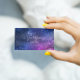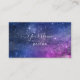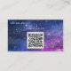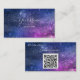 This business card is featuring a purple ,artistic galaxy background ,elegant font with swashes . On the other side there is a QR code to be replaced with your one .