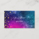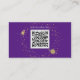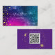 This business card is featuring a purple ,artistic galaxy background ,elegant font with swashes . On the other side there is a QR code to be replaced with your one .