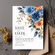 Let your wedding announcement shine with this Elegant Garden Flowers Navy Blue Rust Wedding Save the Date card. Featuring stunning navy blue and terracotta rust watercolor floral accents, it perfectly captures a timeless and romantic vibe. This stylish save the date is designed to complement modern, boho, and rustic celebrations effortlessly. Personalize every detail to reflect your love story, and take the stress out of planning by sending them digitally—ideal for busy couples! Customize yours today and share the excitement with friends and family in a way that's uniquely you!