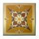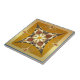 An artistic tile featuring a fantasy geometric design in ocher, ivory and brown colors with a gold gradient. Beautiful for bathroom or kitchen as well as for decoration.