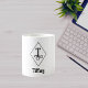 The thin geometric shape outline and refined typography give this mug a boutique, design-forward feel — perfect for everyday use at home, in the office, or as a thoughtful personalized gift.
