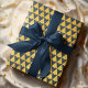 Classically elegant Christmas holiday gift wrap featuring a geometric Christmas tree silhouette pattern in an indigo/ navy blue with faux golf foil print. Perfect decorative gift wrapping paper for all your holiday gifting.