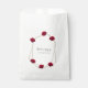 This design features elegant red roses combined with a geometric gold color frame. The gold geometric frame is surrounded by vintage red roses. The combination of red, black and gold colors creates a sophisticated, romantic and chic style. Elegant wedding favor bag design with modern elements. The simple setup of the typography gives it a distinct style. Matching wedding invitations and other stationery items are also available.