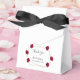 This design features elegant red roses combined with a geometric gold color frame. The gold geometric frame is surrounded by vintage red roses. The combination of red, black and gold colors creates a sophisticated, romantic and chic style. Elegant wedding favor box design with modern elements. The simple setup of the typography gives it a distinct style. Matching wedding invitations and other stationery items are also available.