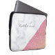 Elegant geometric white marble rose gold glitter laptop sleeve
