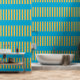 Elegant Geometric Yellow and Blue Striped Pattern Wallpaper