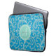 Elegant girly blue floral pattern monogram laptop sleeve