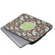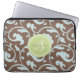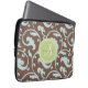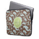 Elegant girly brown blue floral pattern monogram laptop sleeve