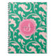 Chic elegant stylish feminine decorative swirl green and pink floral pattern design, the cute girly retro modern floral pattern in green and pink give this elegant retro design a contemporary, unique and feminine look. Cool unique gifts for her. Custom the personalized monogram with your own initial and name, you can also click "customize it!" button under product photo to edit the color and the font of the initial!