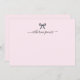 This is a blush pink elegant girly note card in elegant script monogram name with a cute black ribbon bow design.
