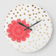 Cute and elegant design representing pink flower and faux gold polka dots pattern.