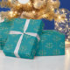 This wrapping paper features elegant and glam faux gold foil pattern on teal background.