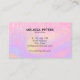 Elegant Glitter Holographic Script Makeup Artist Business Card. A simple and trendy business card design template, personalize with your business details for a minimal unique contact card. Features script signature font and modern design layout.