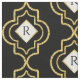 Elegant black and gold tone faux glitter look moroccan tile, trellis design with diamond shaped, gold tone edged emblems for your monogram initial. Design by Holiday Hearts Designs (rights reserved).
