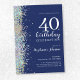 Elegant Glitter Navy Blue 40th Birthday Invitation