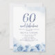 Elegant glitter script blue floral 60th birthday invitation