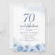 Plain white envelopes are included with paper invitations and will come to fit the invitation size you select. If you don’t need the envelopes, you may choose to not receive them by selecting the dropdown below "Envelopes" and choosing "None." If you’d like to have a design on your envelopes, you can browse all of these available envelopes to find the design that complements your Elegant Glitter Script Blue Floral 70th Birthday Invitation.