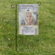 The elegant memorial tribute garden flag, Features a glittery red background with a classy frame of gold to compliment the image. The memorial offers a unique grave decoration for the funeral of your beloved person. Also, the memorial garden flag comes with 'IN LOVING MEMORY OF'' and the name, birth, and death dates.