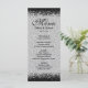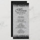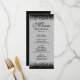 This elegant menu features your details on a glittery silver background. You can click the customize link to add your details. This is part of a classy wedding suite that can be fully personalized.