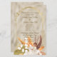 Beautiful white Watercolor Pampas Grass with a Feather nestled on a gold ornate frame. A background of a glossy finish set off the invitation.