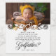 Elegant Will you be my Godfather proposal bottle labels. Design features 1 photo of the baby inside elegant floral frame and your message.