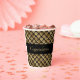 Paper party cups with a dramatic and elegant pattern features Art Deco style geometric fans on black background with customizable center text band