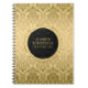 Elegant girly design. Vintage floral damasks in gold with agains black background. Customizable monogram.