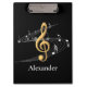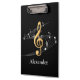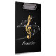 Elegant Gold and Black Music Notes Custom Name Clipboard