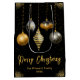 Celebrate the season in style with this elegant black Christmas gift bag featuring five gold and black hanging ornaments, scattered golden stars, and customizable text. Add your family name and year for a personal touch that elevates any holiday gift. Perfect for festive packaging, party favors, or under-the-tree presentation.