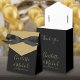 Elegant black and gold wedding favor box featuring stylish signature script names and special date set in modern typography. You can personalize with your own thank you message under the lid. A perfect way to say thank you to your guests! Designed by Thisisnotme©