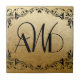 Three Initial Monograms Elegant Black and Gold Personalized Ceramic Tile